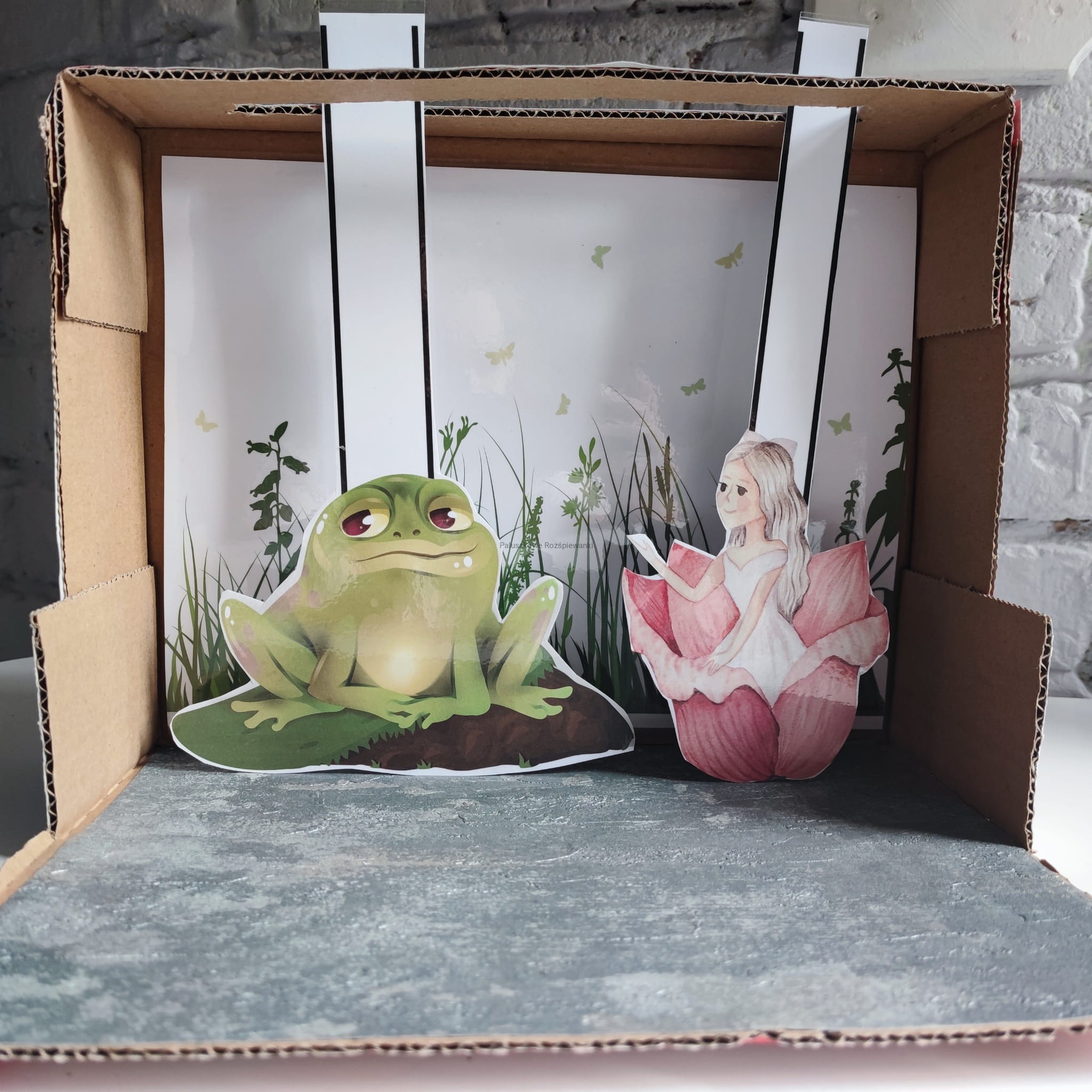 Ogromną atrakcją może być też teatrzyk na canvie rymowanki, który możecie samodzielnie stworzyć z kartonu i gotowego tła, wycinając zalaminowane postacie (35 sztuk) z użyciem tekstu czytanego lub audiobooka.
