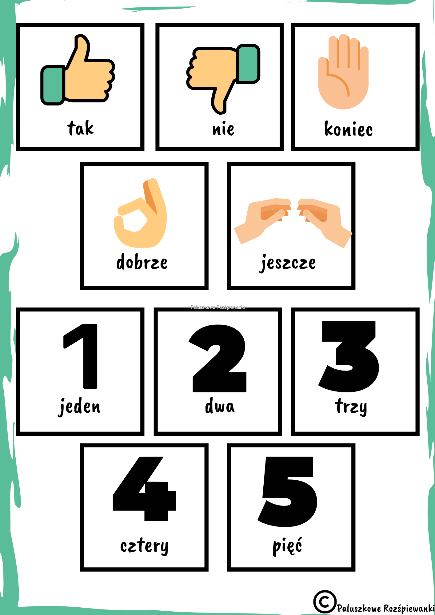 Pakiet autorskich rymowanek dla maluchów w pierwszych zabawach z liczbami i kształtami.